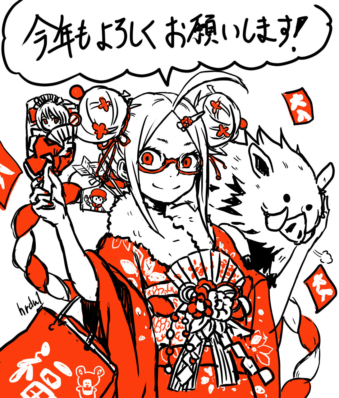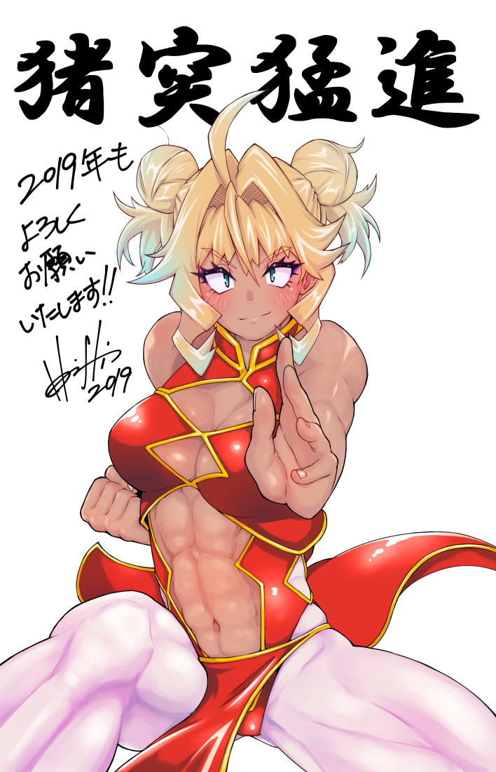 うちの子ミシェルちゃん、チャイナドレス(っぽい服)で書初めでございます!^^