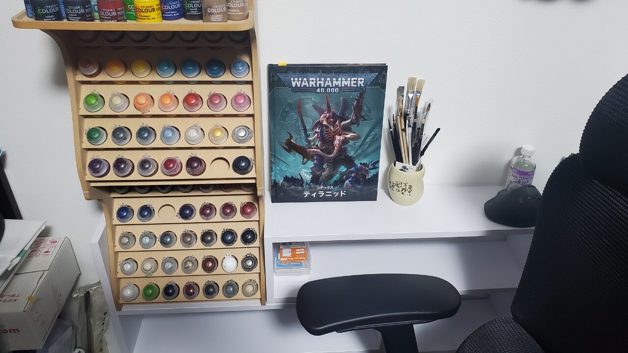 シタデルカラー(改名してウォーハンマーカラーになるみたいだけど)とかファレホとか、最近だとアッセンブルカラーとかが塗料の乾燥が早いって特性があって、実際数分で乾燥しちゃうんで、その上から重ね塗りが気軽にできるんですよね