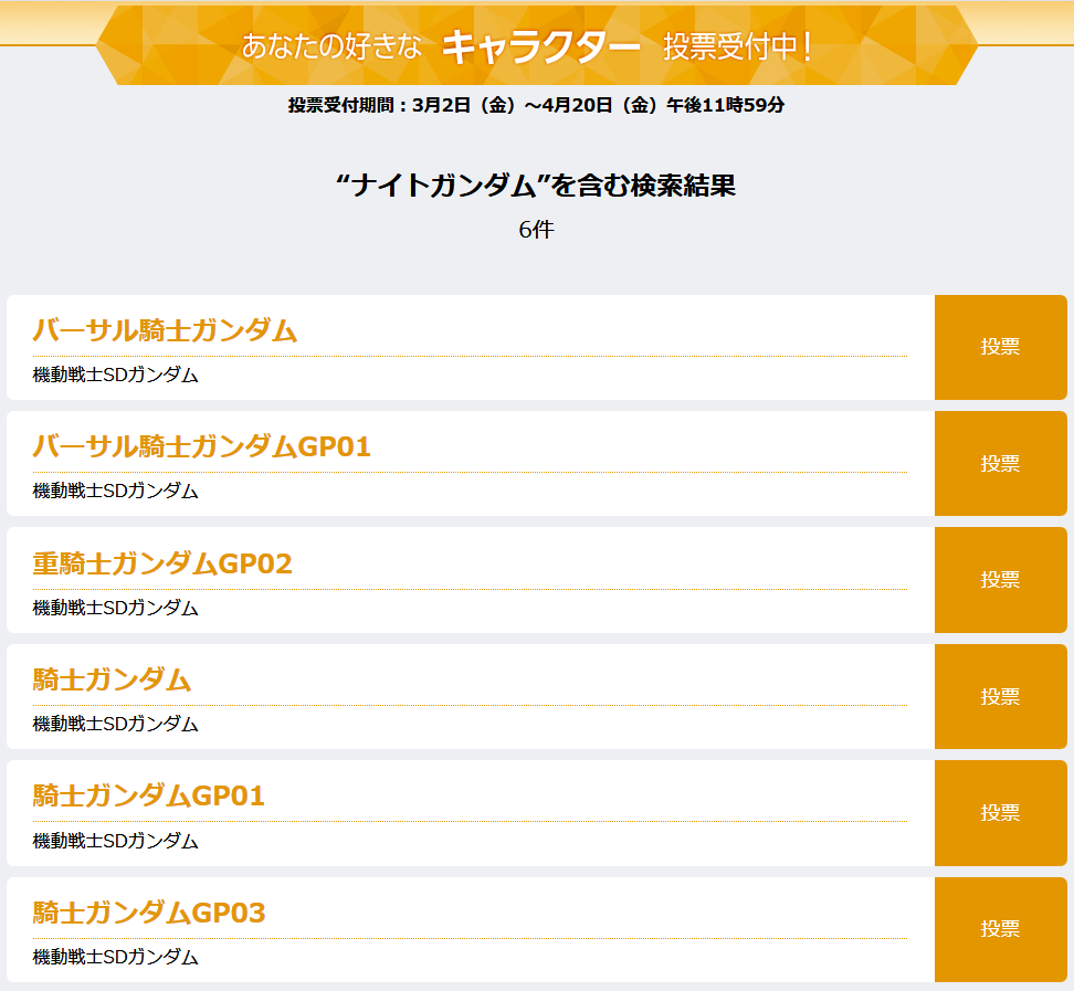 とりあえず某投票にSDガンダムフォース(2003-2004)とキャプテンガンダムがあったので一安心
