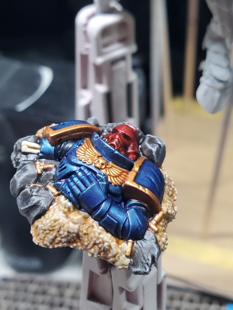 シタデルコントラストカラー楽しいガンメタの上から青く染めるだけでエッジハイライトがいい感じにつく!!