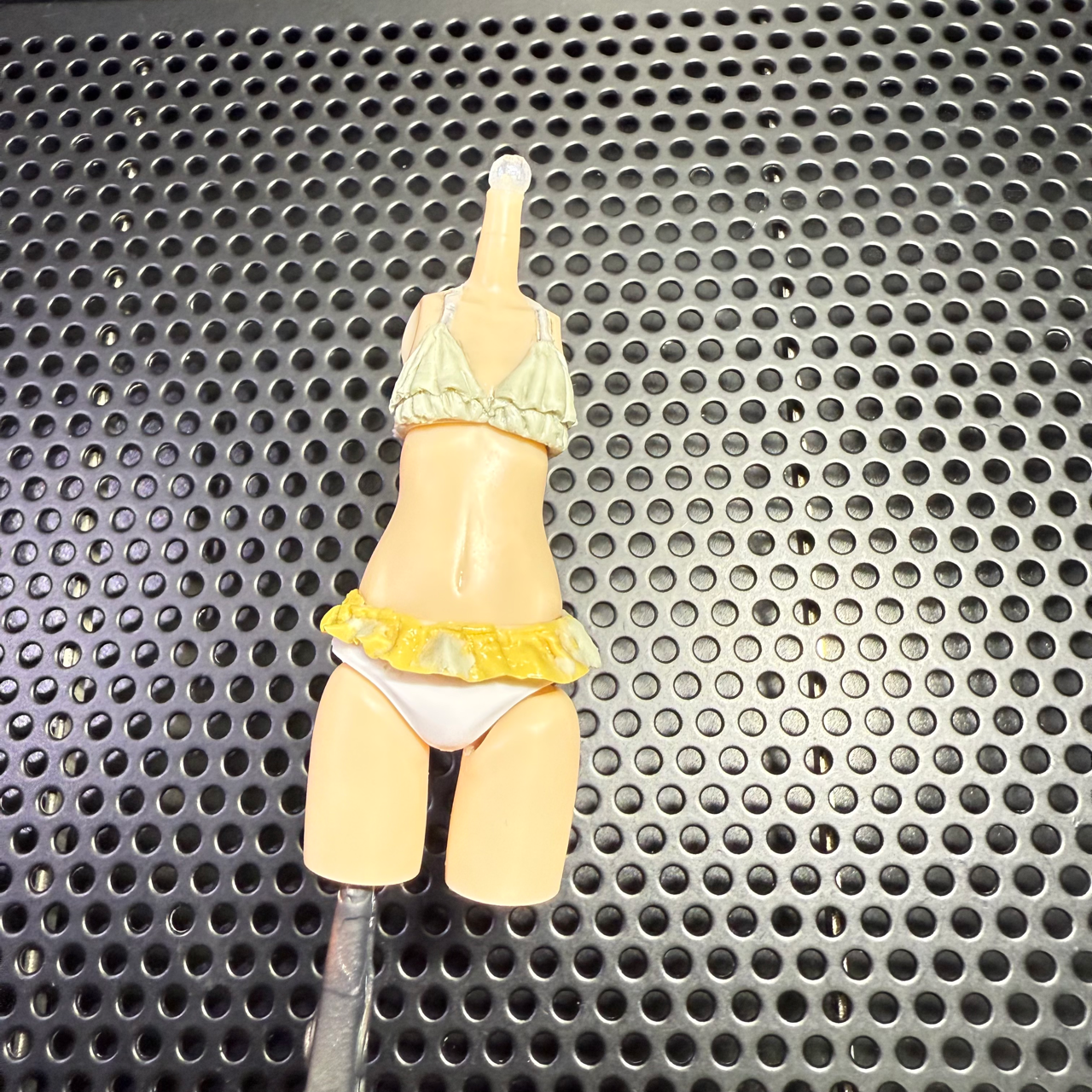 勢いで買ってしまったコトブキヤのドレスアップボディの使い道を考えていたが、パーツ取り用に買った某キャラの頭部だけ据えて水着でも作るかとエポキシパテをコネコネした結果。